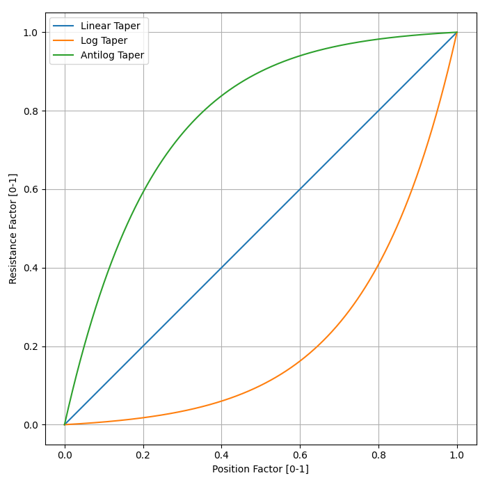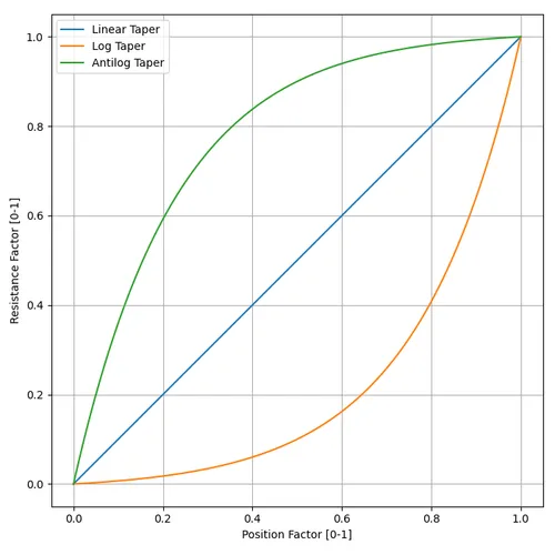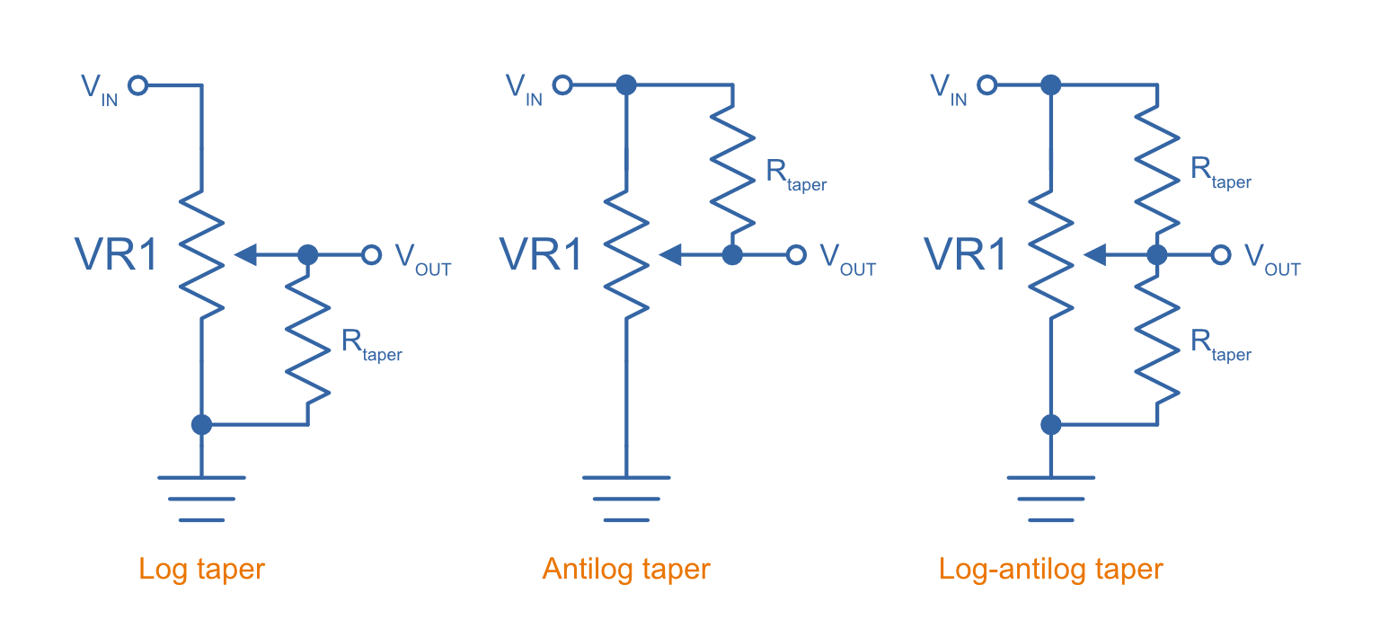 EE Power. Chapter 3 - Resistor Types: Potentiometer Taper. Retrieved 2021-12-13, from https://eepower.com/resistor-guide/resistor-types/potentiometer-taper/#. ↩ ↩2 ↩3
