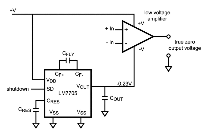 Special charge pumps exist that only produce a very small negative voltage (e.g. -250mV), for providing the negative power supply to rail-to-rail “single-supply” op-amps so that they can output a true 0V. More on this on the Op-amps page.
