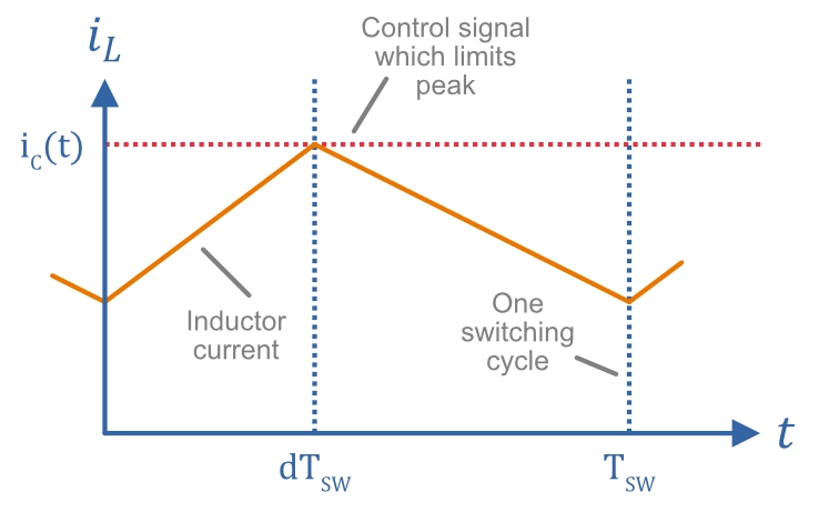One benefit from controlling the peak current is that we can easily limit the maximum current through the inductor by limiting the maximum value that the control signal can ever be. We might want to do this to make sure the inductor current never exceeds it’s maximum rating (usually the minimum of it’s saturation current or rated current).