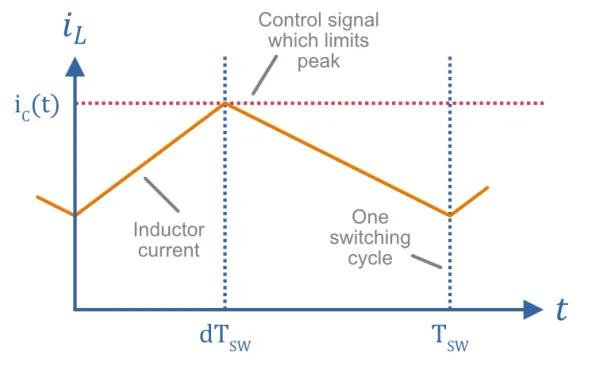Peak Current Mode Control (PCMC) is a specific type of current mode control which senses the peak current flowing through the inductor. The peak current through the inductor (and consequentially, the switch) is limited by a control signal which in turn is generated by amplifying the difference between the output voltage feedback and the reference voltage .