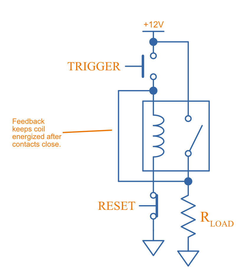 With a little external componentry, a mechanical relay can be made to latch-on after triggered, and will only reset once a reset button has been pushed (or power disconnected).