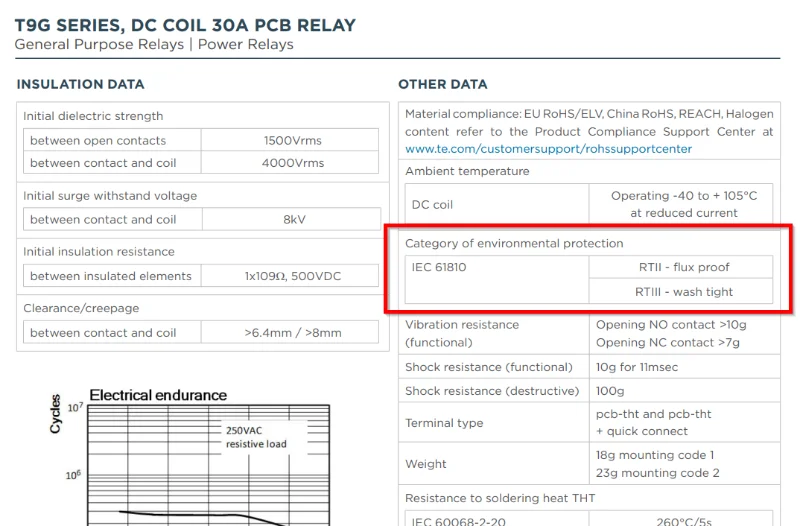 TE Connectivity (2023, Dec). POTTER & BRUMFIELD - T9G SERIES - DC COIL 30A PCB RELAY - GENERAL PURPOSE RELAYS | POWER RELAYS [datasheet]. Retrieved 2025-02-20, from https://www.te.com/commerce/DocumentDelivery/DDEController?Action=srchrtrv&DocNm=T9G&DocType=Data%20Sheet&DocLang=English&DocFormat=pdf&PartCntxt=CAT-P851-T1. ↩ ↩2