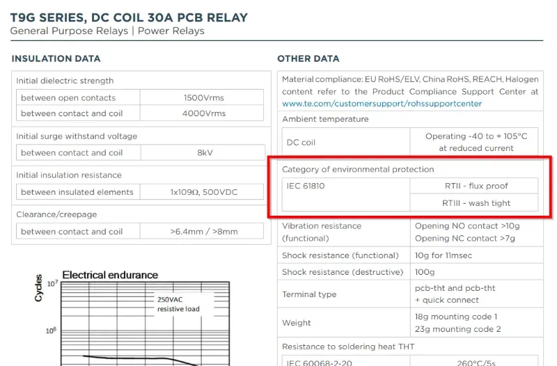 - RT III: Wash tight (washable) relay. Relay capable of being automatically soldered and then washed (e.g. ultrasonic bath) without allowing the ingress of flux or washing solution.