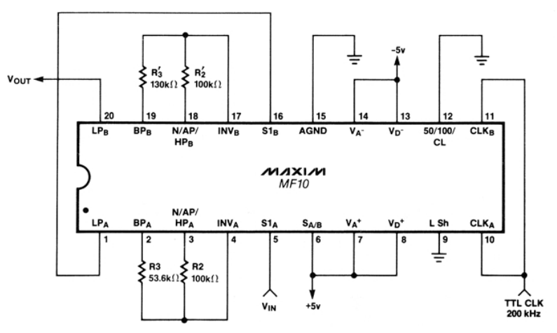 5. Maxim Integrated (1996, Jul). MF10: Dual Universal Switched Capacitor Filter. Retrieved 2022-08-29, from https://datasheets.maximintegrated.com/en/ds/MF10.pdf. 2