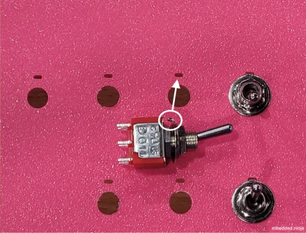 This is a placeholder for the reference: fig-toggle-switch-showing-rotation-locking-key highlights the rotation locking keys that come with standard panel mount toggle switches.
