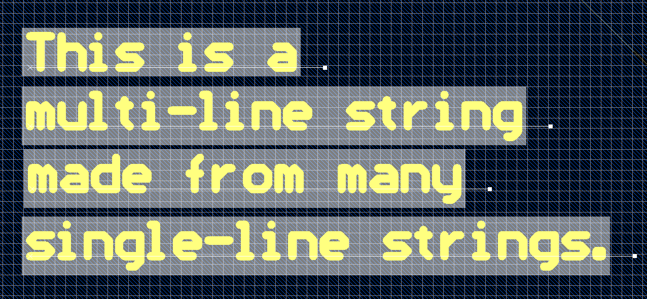 Altium does not have support for multi-line PCB strings. The work around is build up your multiline PCB string from many single line strings. This is time consuming, annoying, and seems like a waste of time.