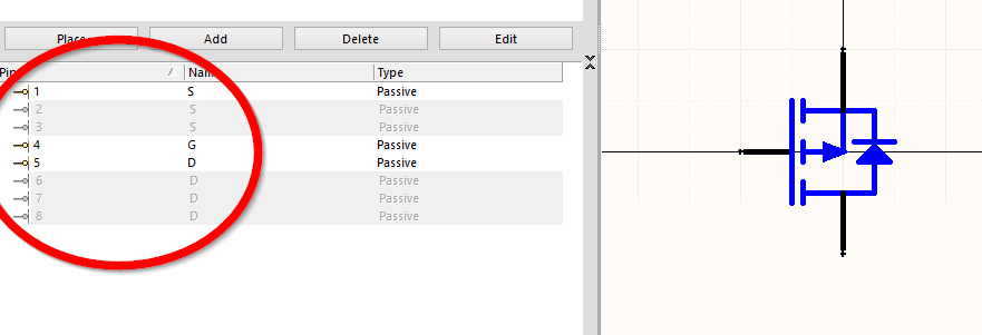 This would be very useful for certain component/package combinations which use multiple pins for the same purpose. Such an example are MOSFETs in the SOIC-8N component package. The standard pinout for connecting the three MOSFET terminals to the 8-pin SOIC-8N package is source = pins 1 to 3, gate = pin 4, drain = pins 5 to 8.