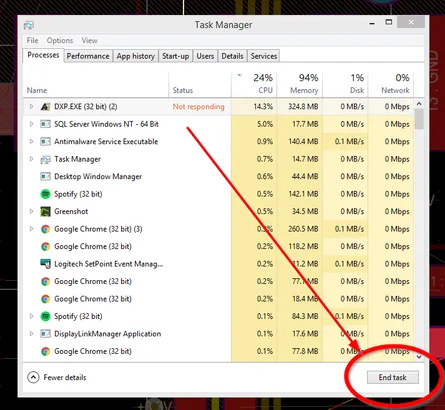 The easiest way to close Altium when it crashes it to hit Ctrl-Alt-Delete, bring up the task manager, go to the processes tab, and close DXP.exe. This is plenty faster than closing the program Altium.exe from the same task manager (almost instant, rather than 30+ seconds).