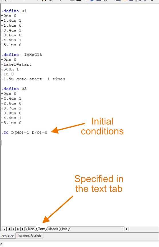 .define _1MHzClk +0ns 0 +label=start +500n 1 +1u 0 +1.5u goto start -1 timesInitial Conditions