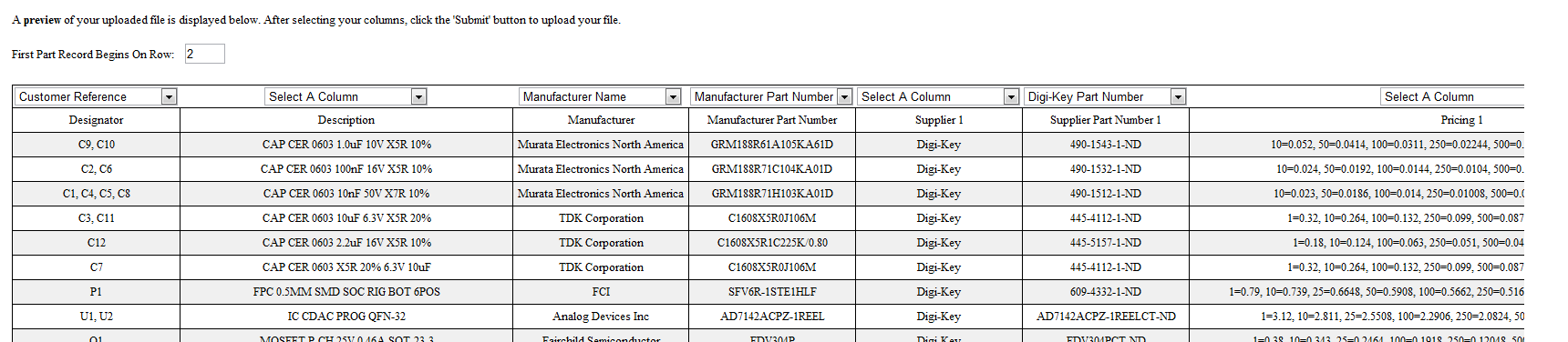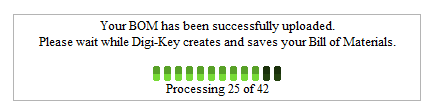 Automatic Part List/BOM/Order Creation. This speeds up the ordering process. Directly upload BOMs as text, csv, or Excel Spreadsheet (.xls) files to DigiKey, select the appropriate columns, and then instantly create orders.