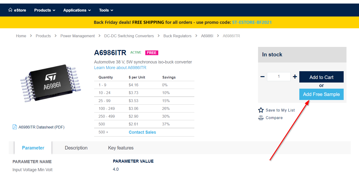 ST Microelectronics. A6986ITR (product page). Retrieved 2021-11-29, from https://estore.st.com/en/a6986itr-cpn.html. ↩