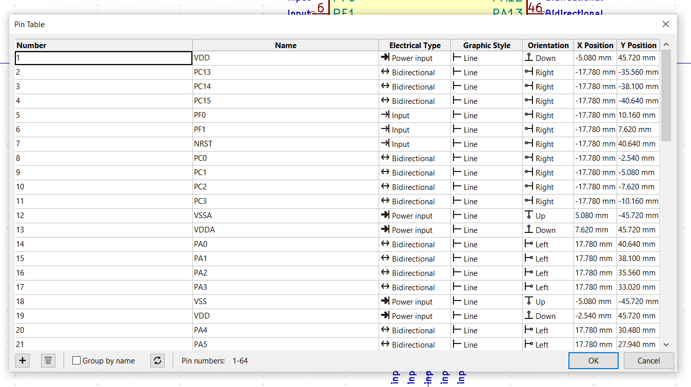 The default grid step size is the symbol editor is 50mil (0.050” or 1.27mm). I recommend you leave the symbol grid size to it’s default when placing pins into symbols, as this will make the symbols consistent when placing onto schematics and prevent pins mis-aligning with the grid.