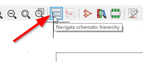 You can navigate the schematic hierarchy using the Navigate Schematic Hierarchy button as shown: