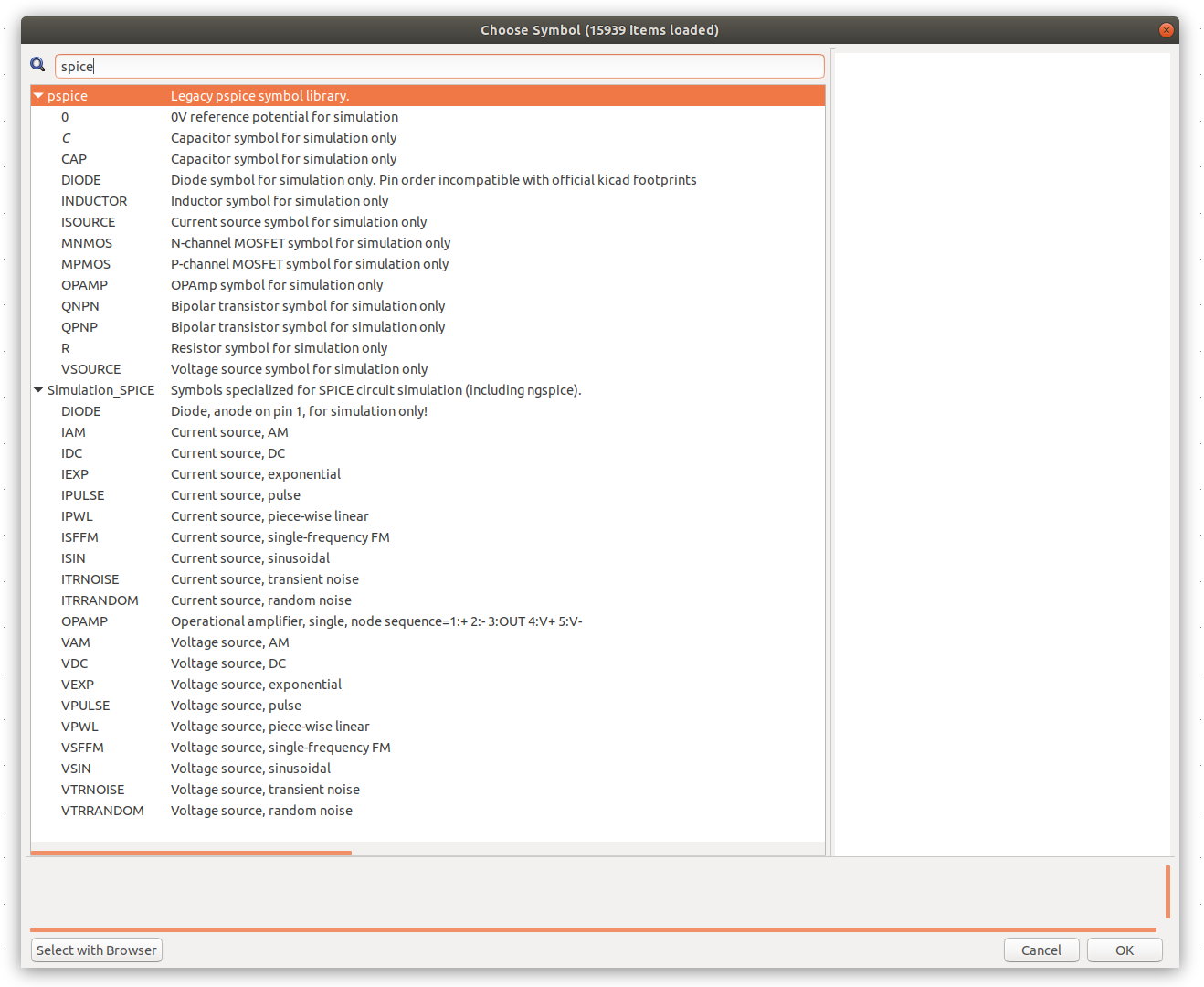 pspice: “Legacy pspice symbol library.” --- Presumably symbols which were used when KiCad used PSPICE.Simulation_SPICE: “Symbols specialized for SPICE circuit simulation (including ngspice).” --- Presumably newer symbols designed to work with the current bundled SPICE simulatorngspice.