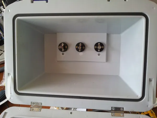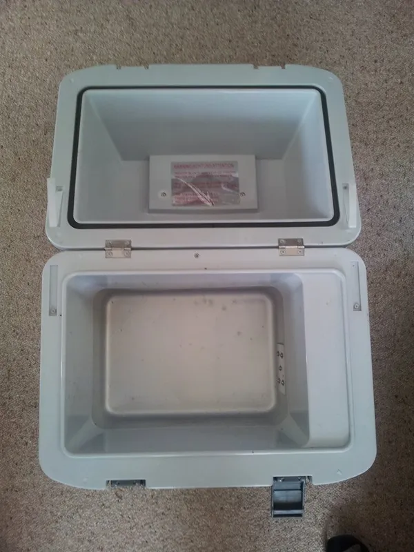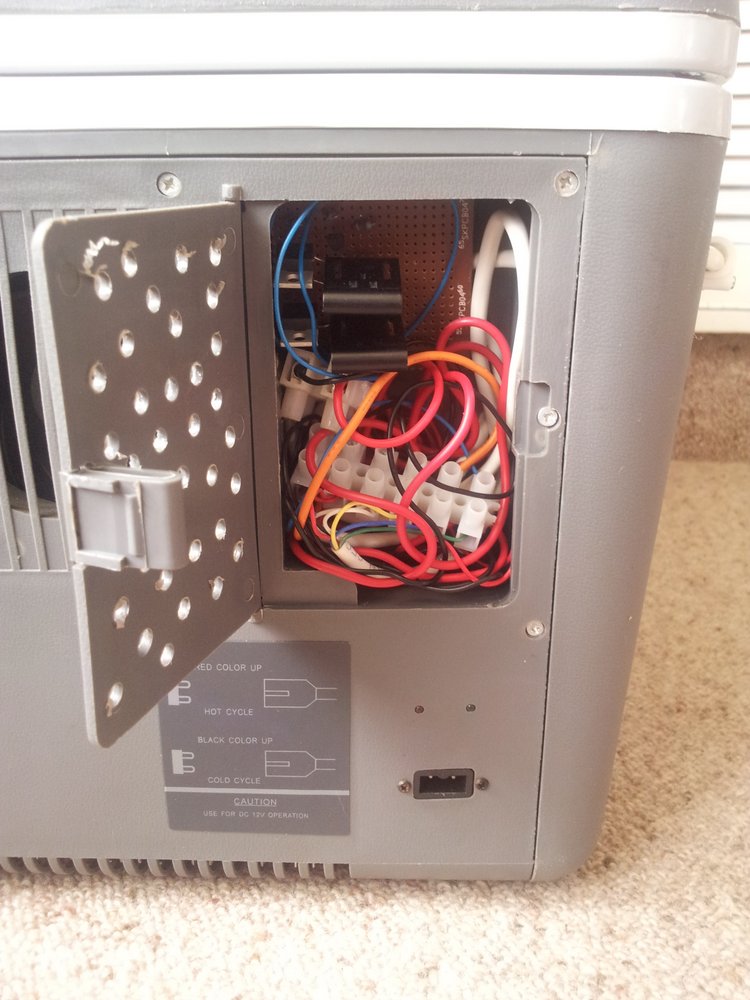 The internal wiring was simple, the input power directly connected to a peltier and thermostat in series with each other (+12V -> peliter+ -> peltier- -> thermostat+ -> thermostat- -> ground).