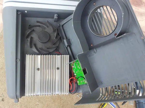 I utilized the existing fan on the heater/cooler (that was used to cool the external heatsink), and redirected some of it’s airflow across the H-bridge MOSFETs.