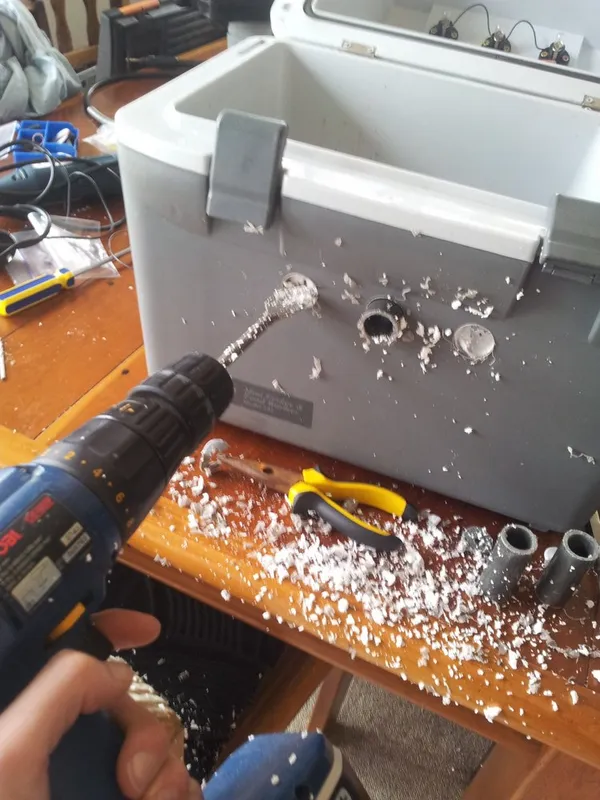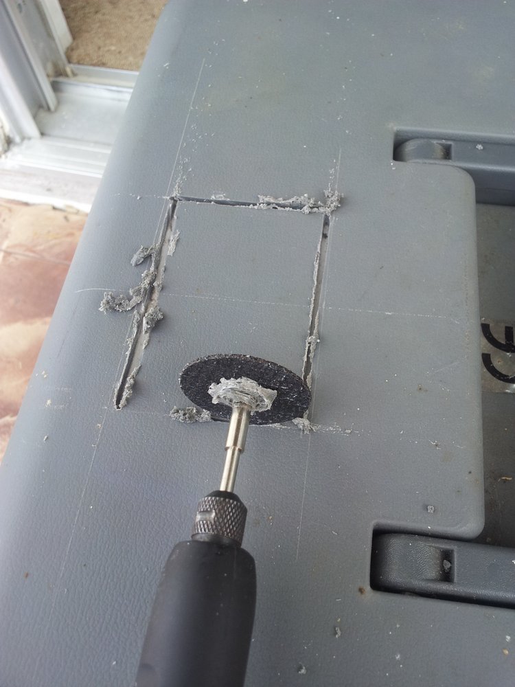 I needed to create space at the top of the heater/chiller for the LCD screen. This meant cutting a hole in the plastic: