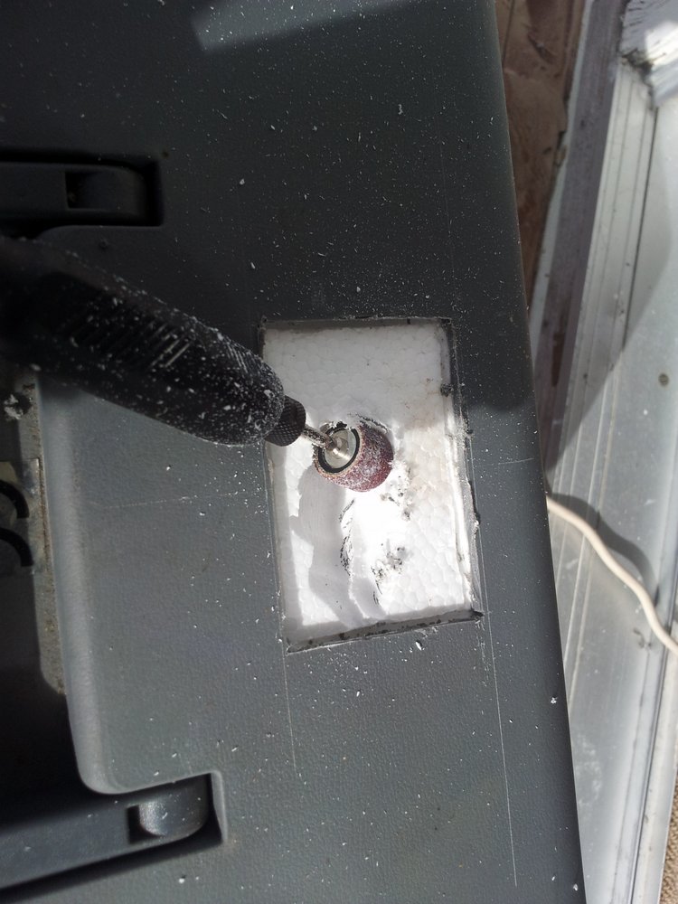 …and removing enough polystyrene below it, so that the LCD screen and Arduino could both fit in there.
