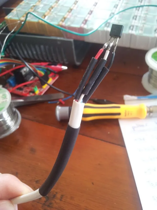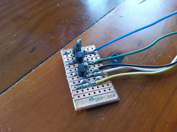 I soldered the IC onto the end of some 6-core alarm cable (only using three of the wires).