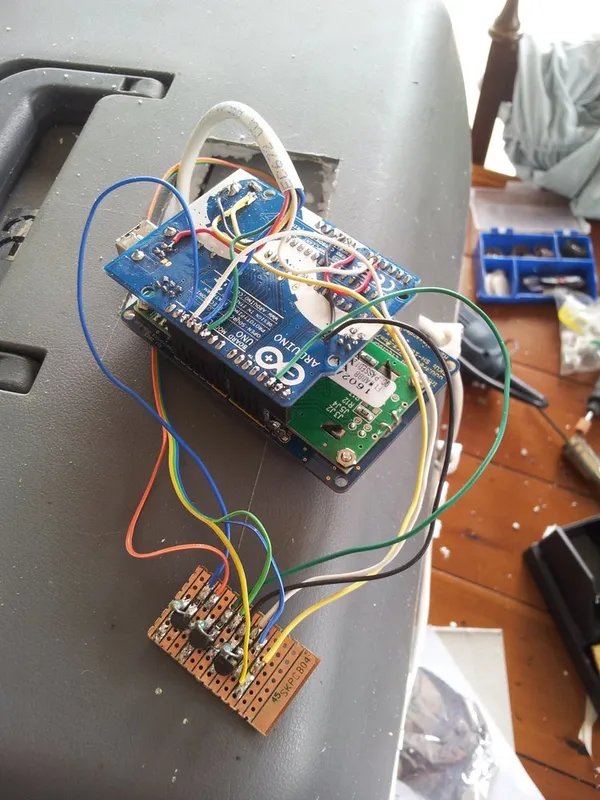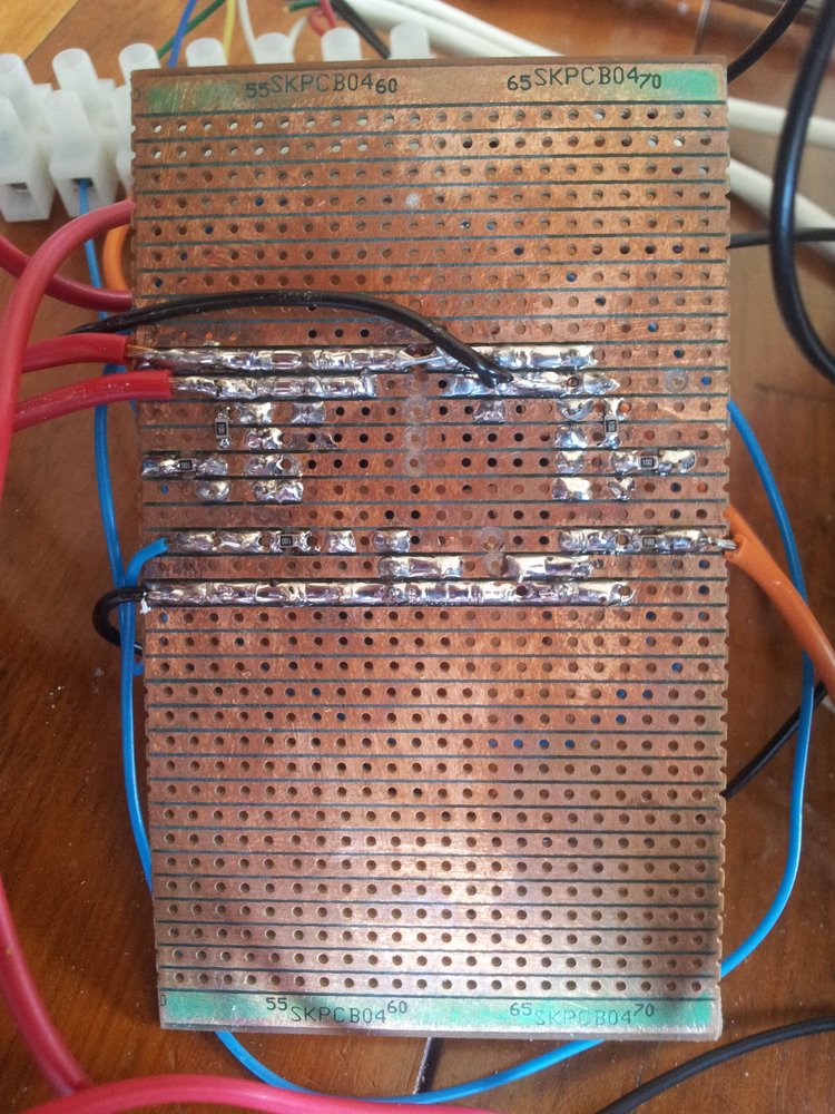 This was then soldered directly up to the Arduino PCB (there was no room for connectors!).
