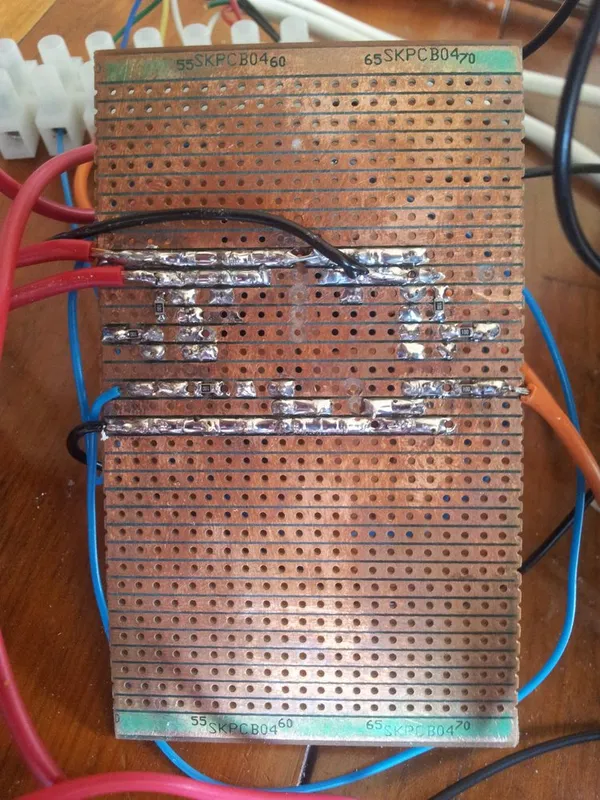 Notice the clip-on black heatsinks for the P-Channel MOSFETs. And the bottom of the finished H-bridge…