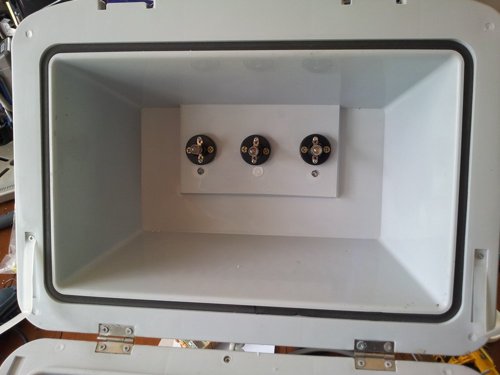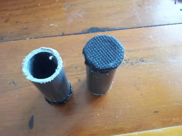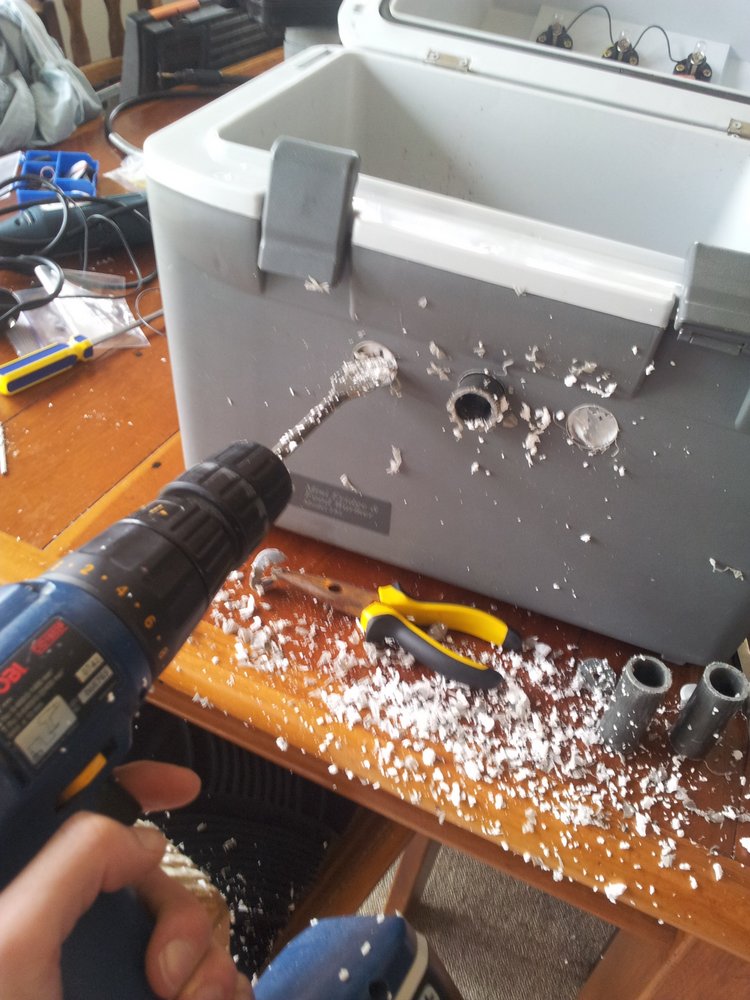 I decided to add three “air-pipes”, which I mounted in the side of the base. I cut 25mm holes the fibreglass pultruded pipe:
