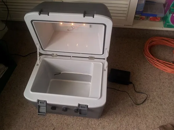 Animals need light, and since the heater/chilled was fully sealed, it needed an artificial light source. I choose traditional tungsten bulbs over something newer such as a LED because they emit a spectra of light which is similar to what the sun emits.