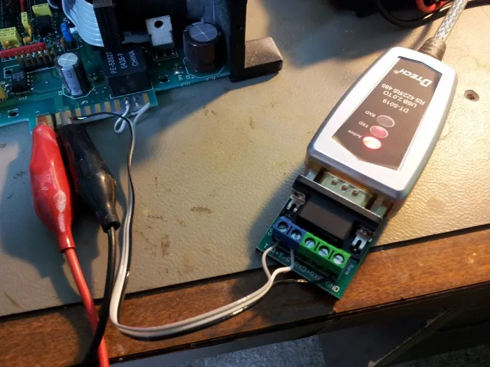 The bare minimum number of connections to get it working are 4, the +24V, GND, RS-485 A Line, and RS-485 B Line (or the RS-232 TX and RX line instead of the RS-485 connections if you have the RS-232 interface board attached). The +24V power supply has to be capable of providing 850mA. A USB-to-RS-485 converter is a good way to control the pump from a computer. The syringe pump is set by default to communicate at 9600 baud.