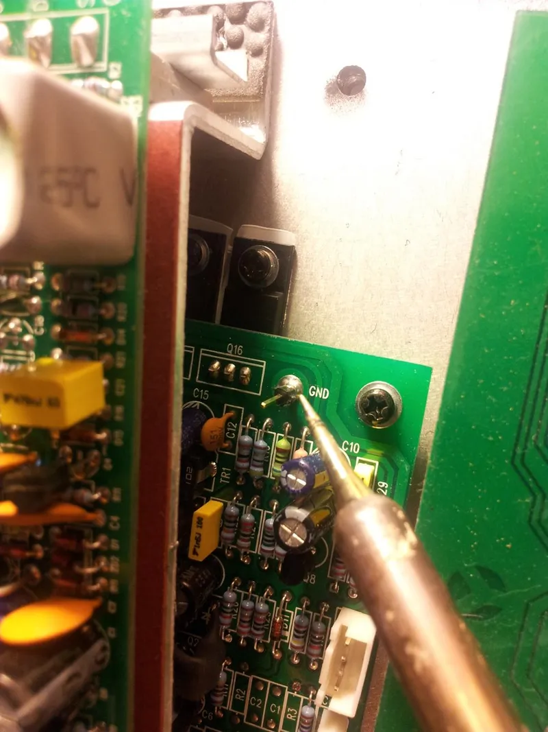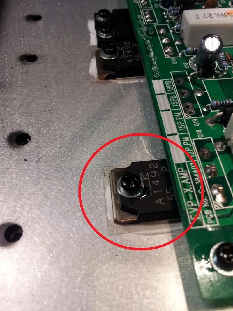 On the premise I over-drove it, I was looking for visibly wrong things such as blown fuses or dried up/non-existant thermal compound. All components were through-hole, so that made things easier to investigate…