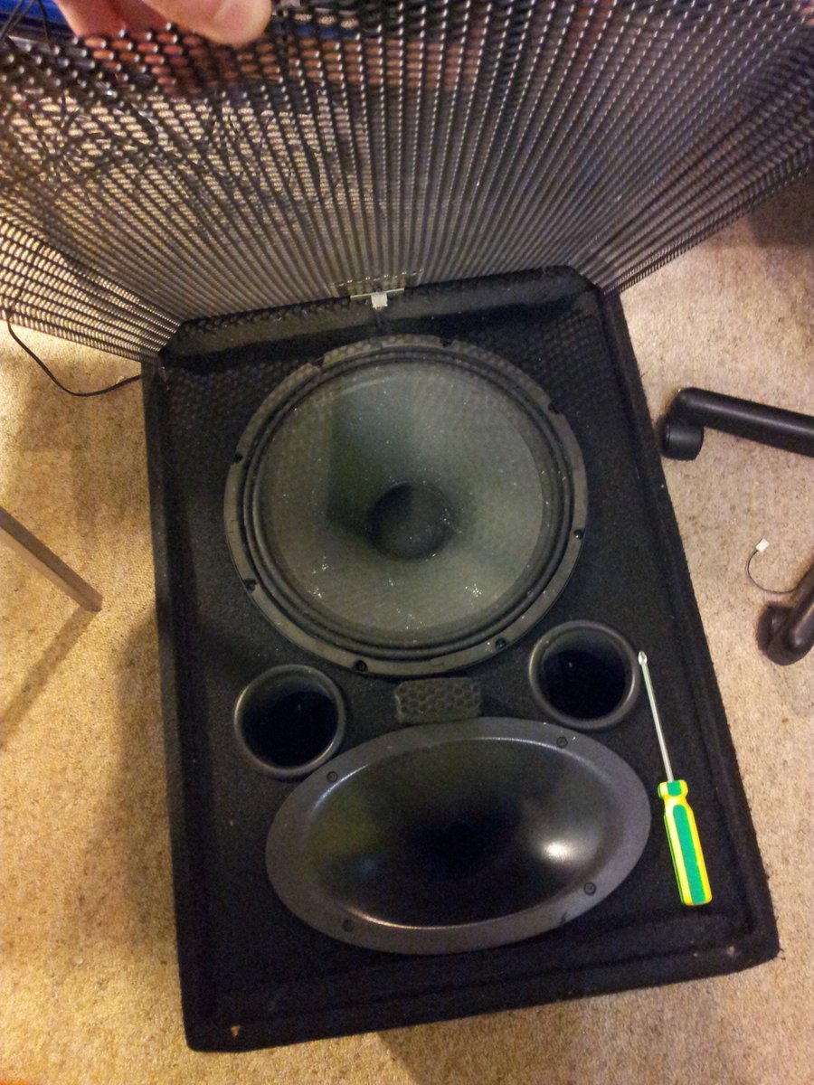 BACKSTORY: So I borrowed two Wharfedale EVP-X12P active speakers for DJing at a 21st party, and half-way through the set, as Skrillex was playing, I happened to blow one up (if I remove the theatrics, what I really mean is that one of the bass/mid cone speakers stopped working). It turned off, and I smelt that ‘burnt electronics’ smell. It turned back in about 10minutes, however was not producing any sound from the cone speaker. I managed to survive the rest of the set with just one.