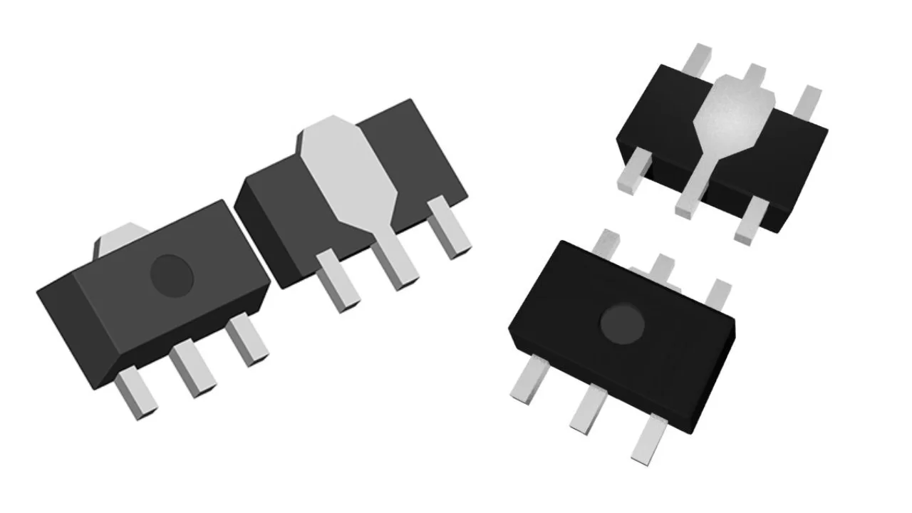 SOT-89 is a family to two small SMD component packages with gull-wing leads and a central tab-shaped lead. The SOT-89-3 and the SOT-89-5 are the two variants.