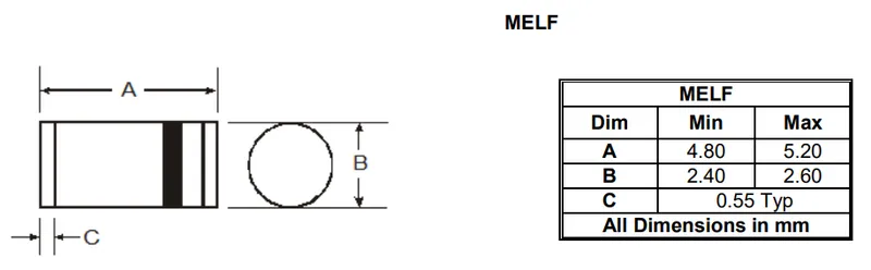 Diodes Incorporated (2017, Apr 5). MELF - PACKAGE INFORMATION. Retrieved 2024-04-16, from https://www.diodes.com/assets/Package-Files/MELF.pdf. ↩ ↩2 ↩3