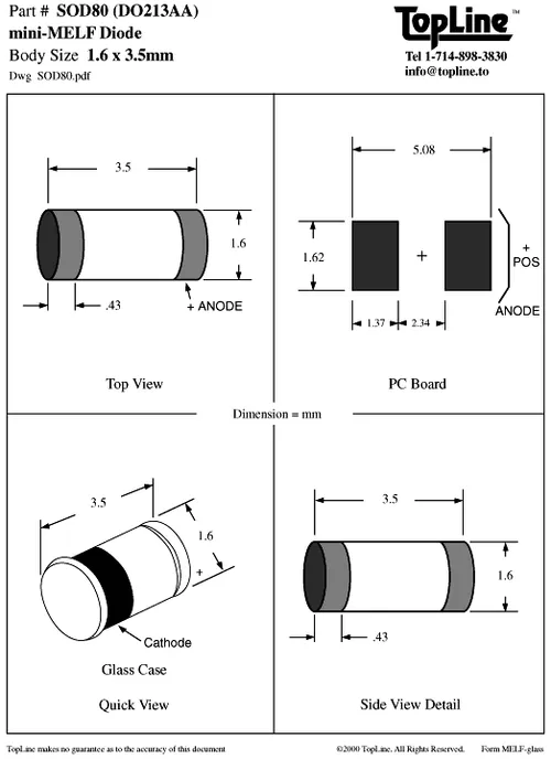 Nexperia (2017, Jan 30). SOD80C: Glass, hermetically sealed glass surface-mounted package; 2 connectors; 3.5 mm x 1.5 mm body (package information). Retrieved 2022-03-04, from https://assets.nexperia.com/documents/package-information/SOD80C.pdf. ↩ ↩2 ↩3