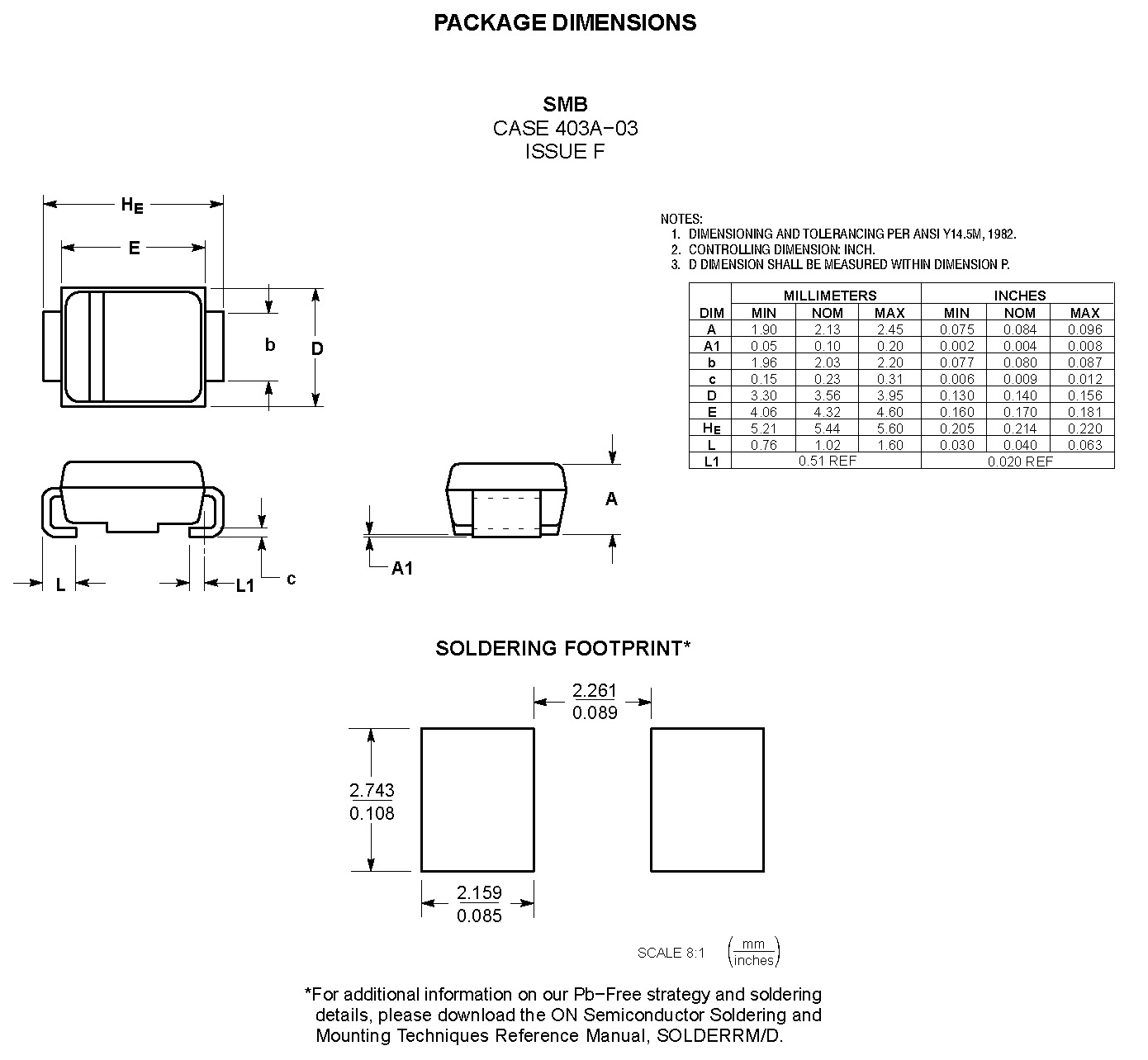 The SMB package takes up a PCB land area of approximately .