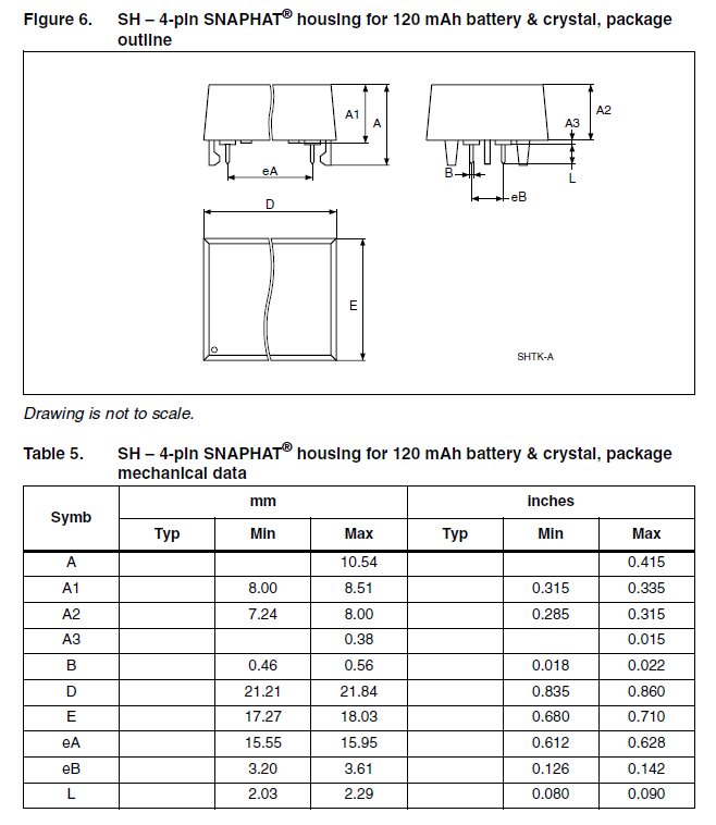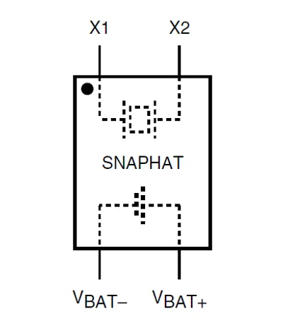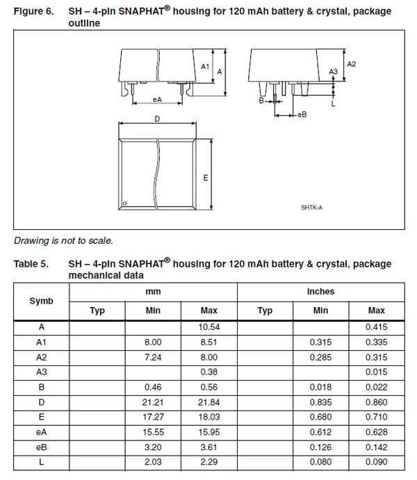 Package registered by ST Microelectronics. Used to hold small rechargeable batteries and crystals for timekeeping on circuit boards once the power is removed. The top part containing the batteries and crystal can ‘snap’ into package after reflow, to avoid damaging the battery.