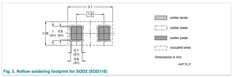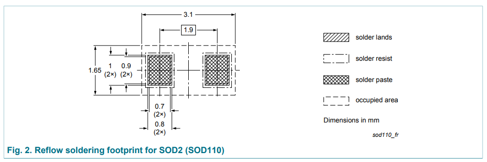 Below is the recommended land pattern for the SOD-110 from NXP (for reflow soldering):