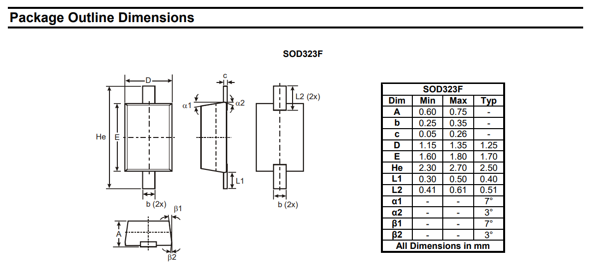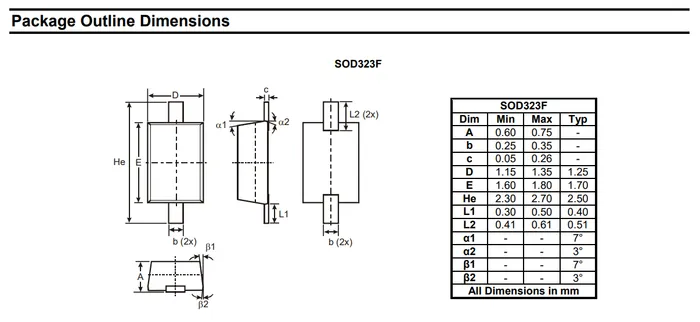 Diodes Incorporated. SOD-323F: Package Information (datasheet). Retrieved 2022-03-27, from https://www.diodes.com/assets/Package-Files/SOD323F.pdf. ↩