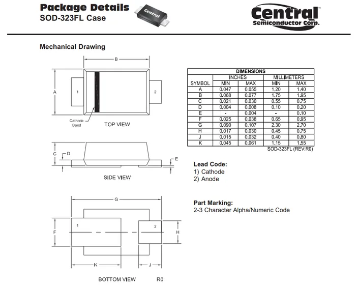 Central Semiconductor (2013, Mar 27). Package Details: SOD-323FL Case. Retrieved 2022-03-27, from https://www.centralsemi.com/PDFS/CASE/SOD-323FLPD.PDF. ↩ ↩2 ↩3