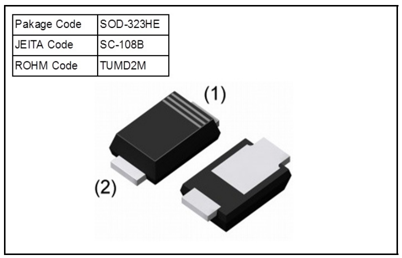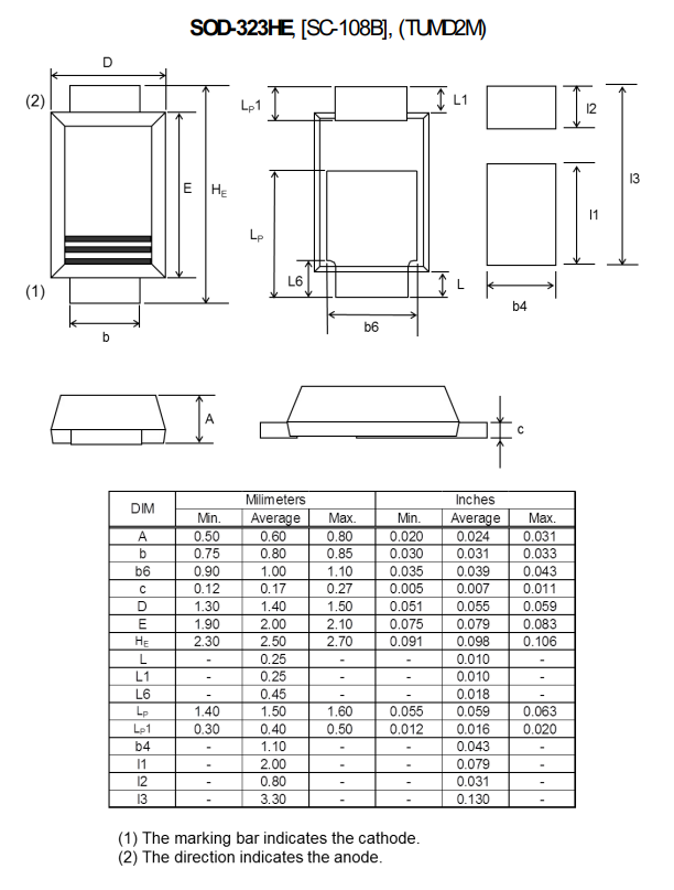 I’m not sure what the distinguishing features of the SOD-323HE package are. It appears to be a SOD-323 with a flat lead style.