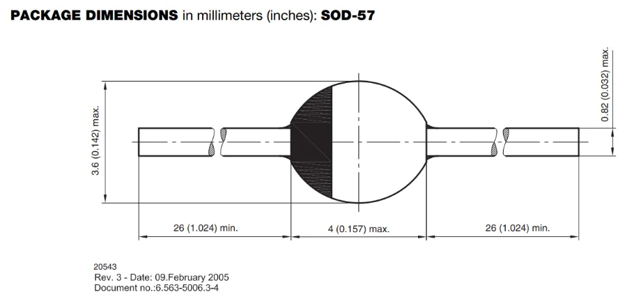 Notice the “bulb” width is 3.6mm. The SOD-64 is a similar package to this but with a bulb width of 4.3mm.