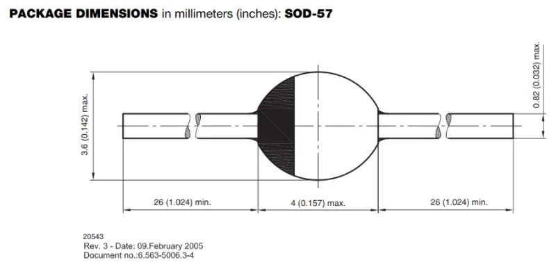 Vishay (2003, Dec 9). SOD-64 - Package Dimensions in mm (Inches). Retrieved 2024-11-29, from https://www.vishay.com/docs/84009/84009.pdf. ↩