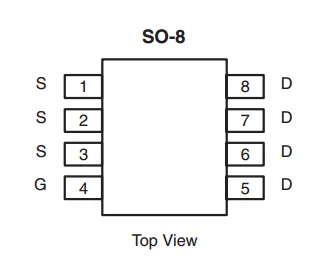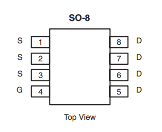 The SOIC-8 component package is commonly used for medium-power N and P-channel MOSFETs. Most of these MOSFETs have the exact same pinout (both N and P-Channels!), as shown in the below diagram.