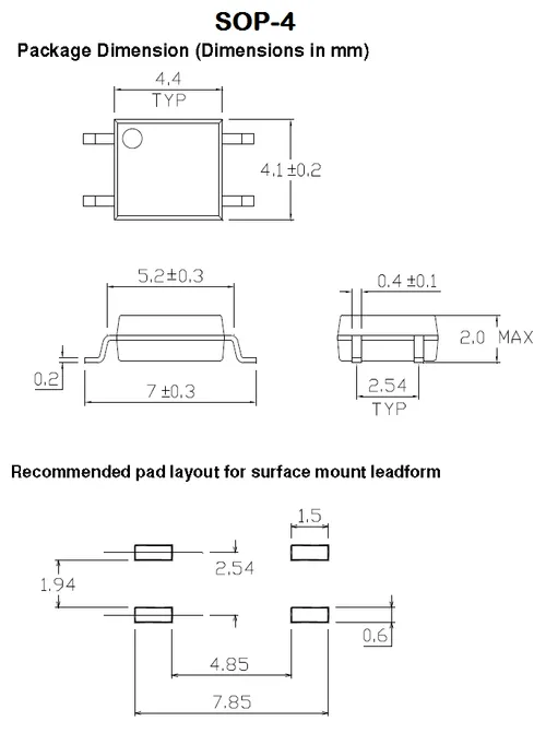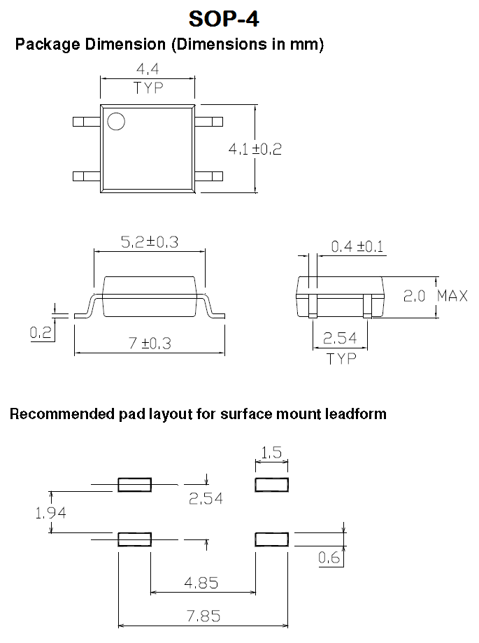 The 2.54SOP4 is a SOP-4 variant from Toshiba1. It has slightly different body dimensions from the SOP-4.