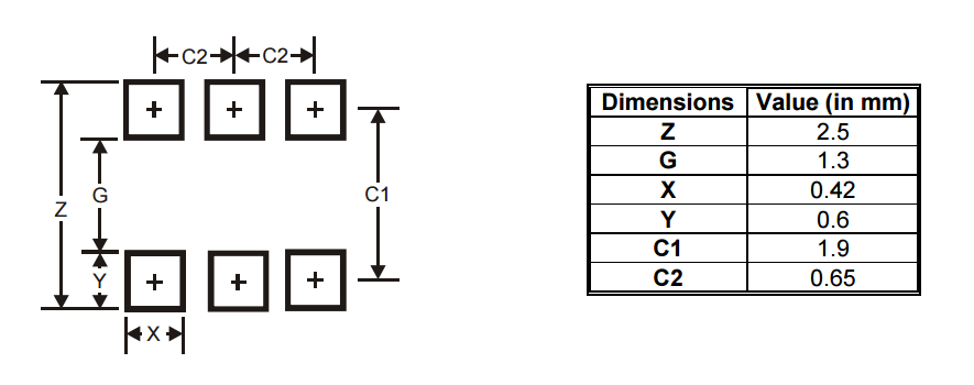 | SOT-323-6 | 1.25mm | 2.0mm | 2.1 | 0.65mm | 6 |