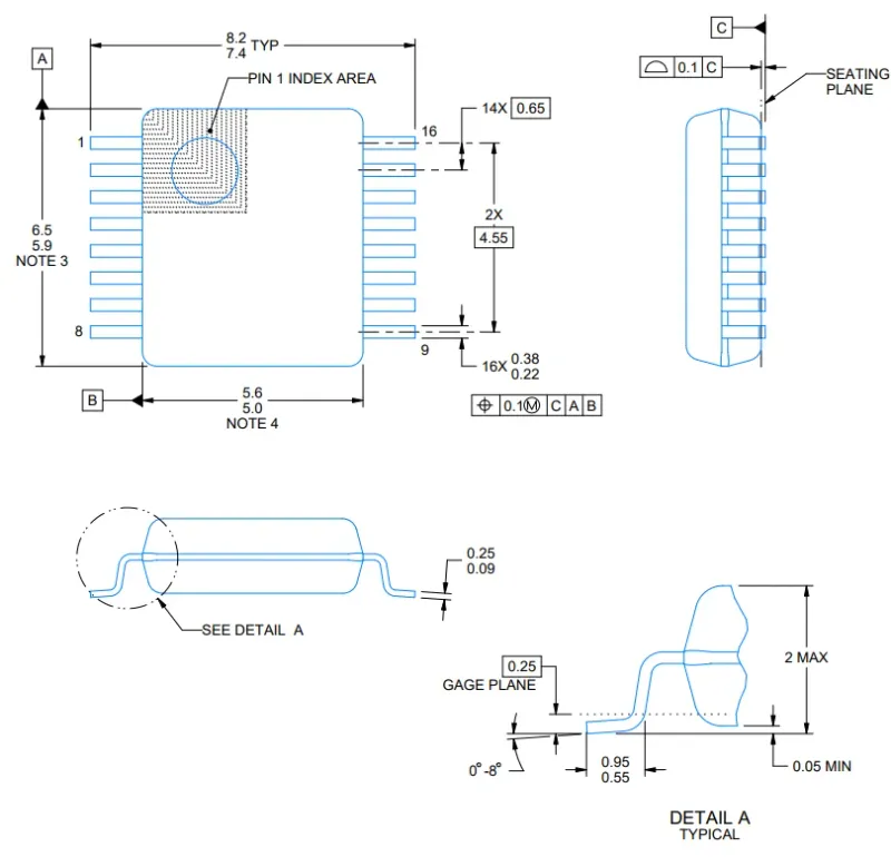 - DB: The Texas Instrument code for the SSOP-16 5.3x6.2mm body package.2