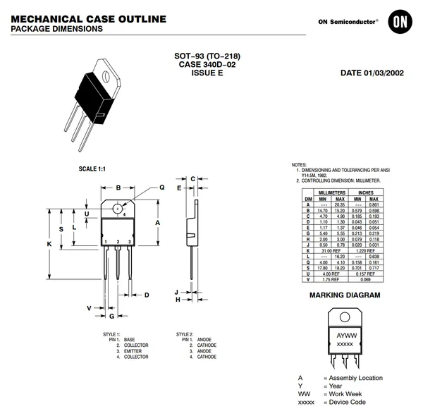 On Semi (2002, Mar 1). SOT-93 (TO-218): Mechanical Case Outline. Retrieved 2021-12-25, from https://www.onsemi.com/pub/Collateral/340D-02.PDF. ↩ ↩2