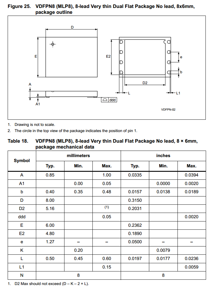 Below is an “odd shaped” SON package used by Numonyx flash chips that goes under the name VDFPN8. Notice the half-round appearance of the pins.