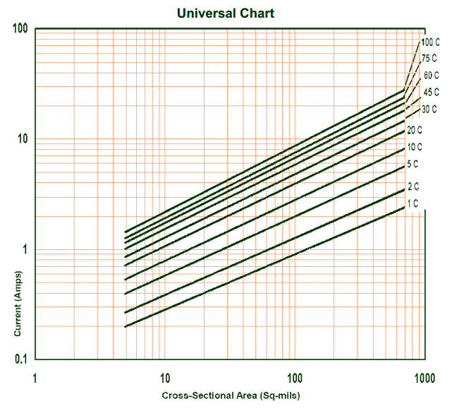 The Universal Chart in IPC-2152 which gives an un-adjusted track cross-sectional area based upon the desired current and temperature rise.