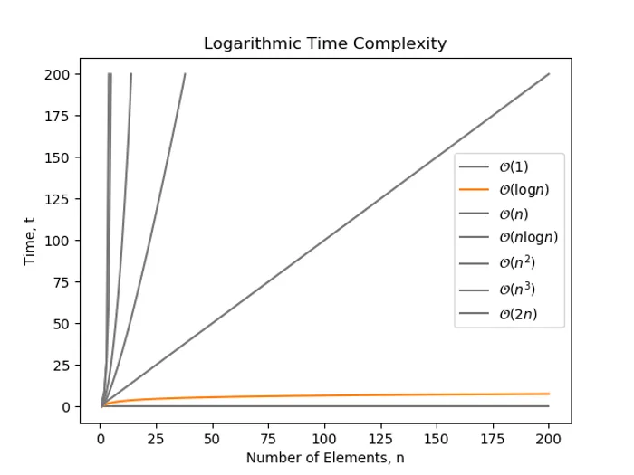 is a time complexity where the number of operations grows with the logarithm of the size of the input. complexity is considered to be pretty good. You can think of it as: Every time the size of the input doubles, the complexity increases by a constant amount.
