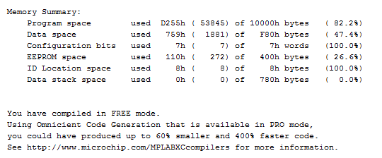 The Free versions of the MPLAB XC compilers allow for limited optimisation (both in w.r.t. size and speed). The Standard and Pro versions allow for increased optimisation levels.